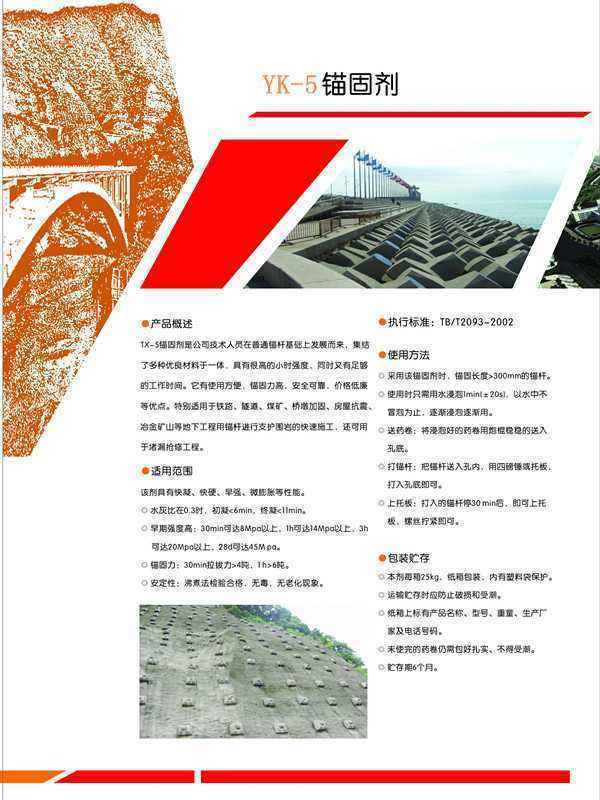本產(chǎn)品主要同細(xì)砂配制錨固砂漿,用來錨固各種礦井、巷道、人防、混凝土洞室、鐵路、公路隧道及各種地下工程的噴錨支護(hù),基礎(chǔ)加固,錨固,建筑錨釘和其它需要錨固的地方及搶險工程等。該錨固砂漿在短時間內(nèi)可獲得理想的粘結(jié)強(qiáng)度,且后期強(qiáng)度持續(xù)增長,有良好的耐水性及微膨脹性能。各項性能指標(biāo)均優(yōu)于目前市場上所用的灌注料,是一種集錨固和噴漿等功能為一體的新型理想建筑材料。